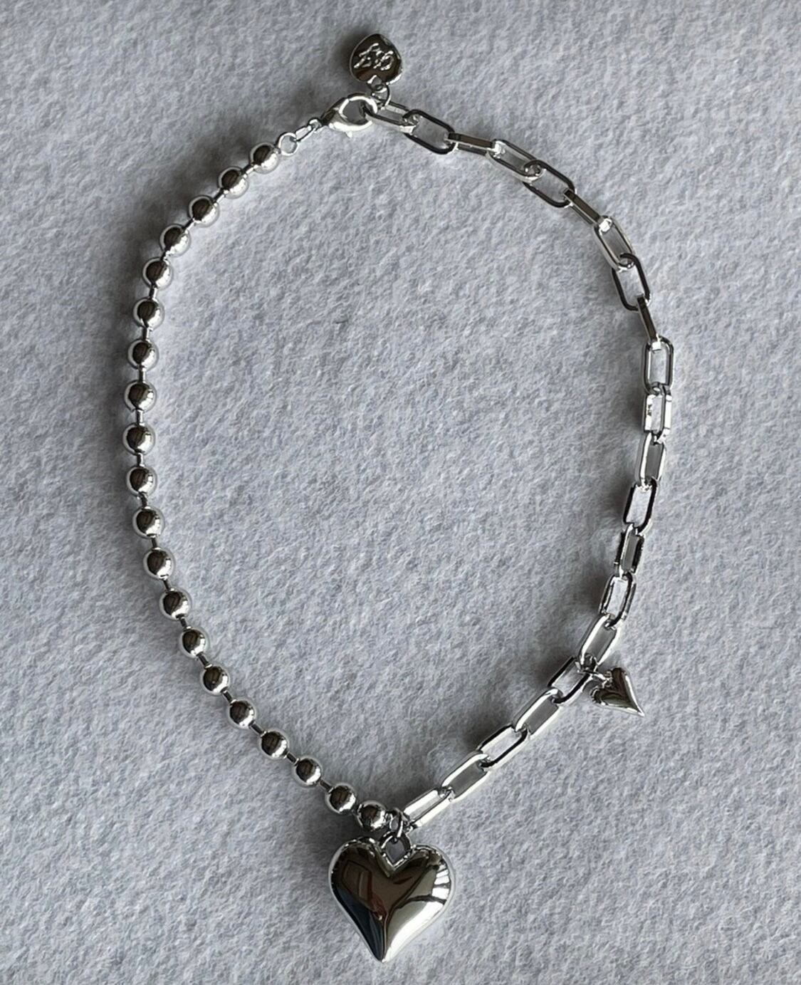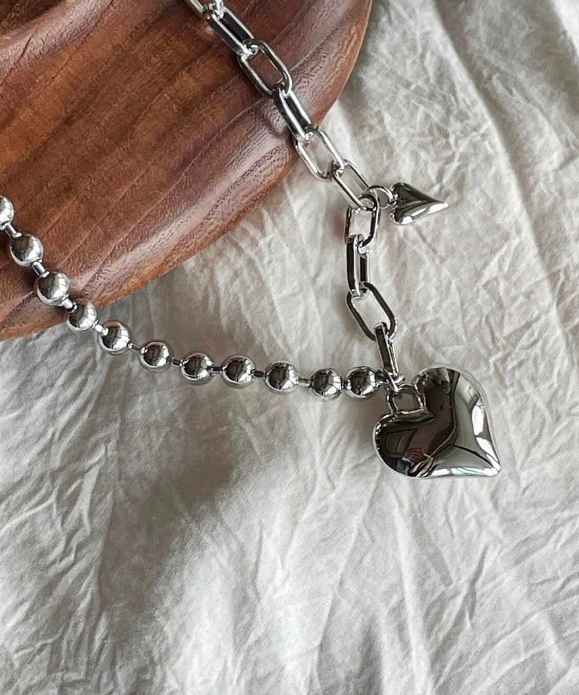チェーン部分がオシャレなボリュームハートネックレス。チェーンの長さは約37cmです。