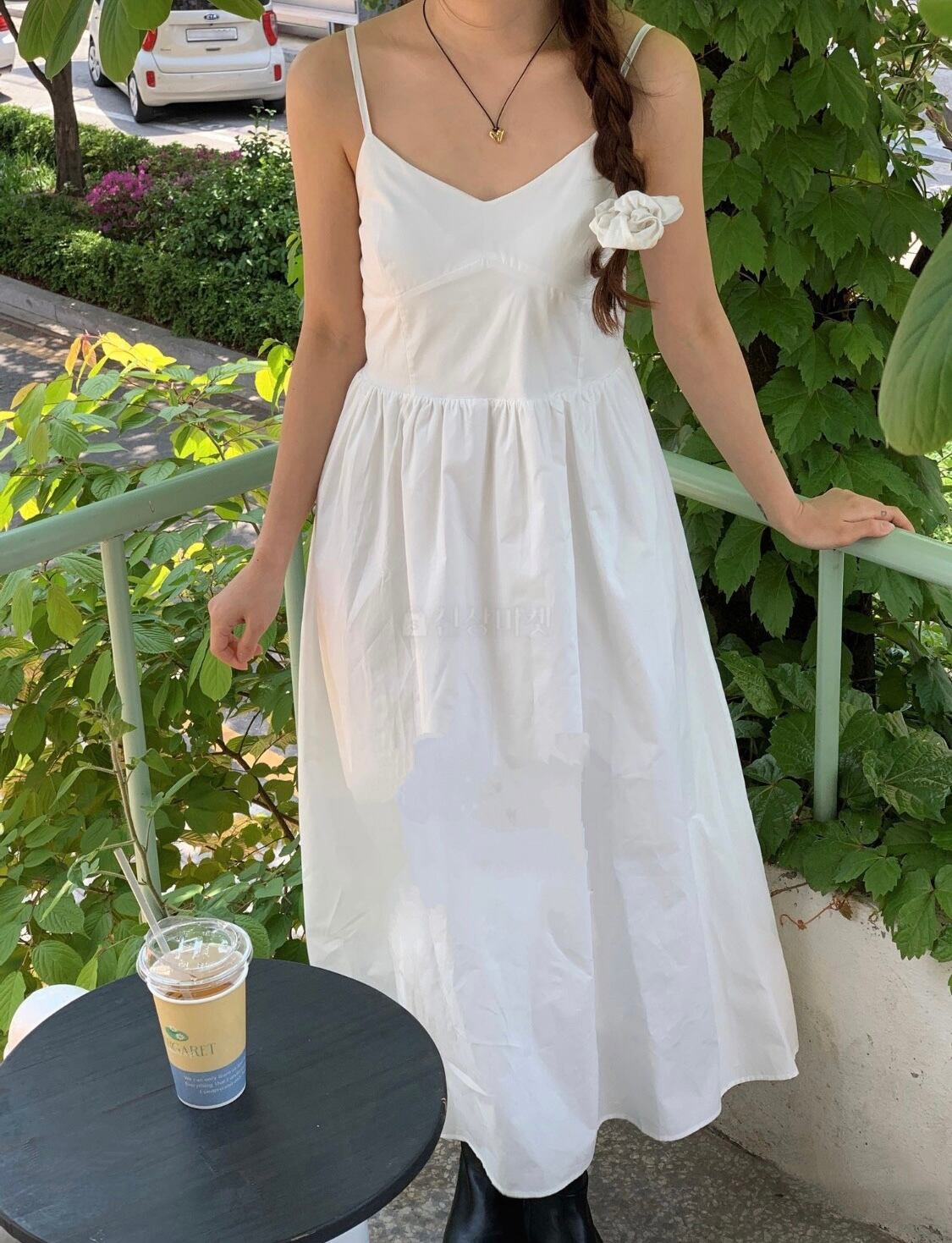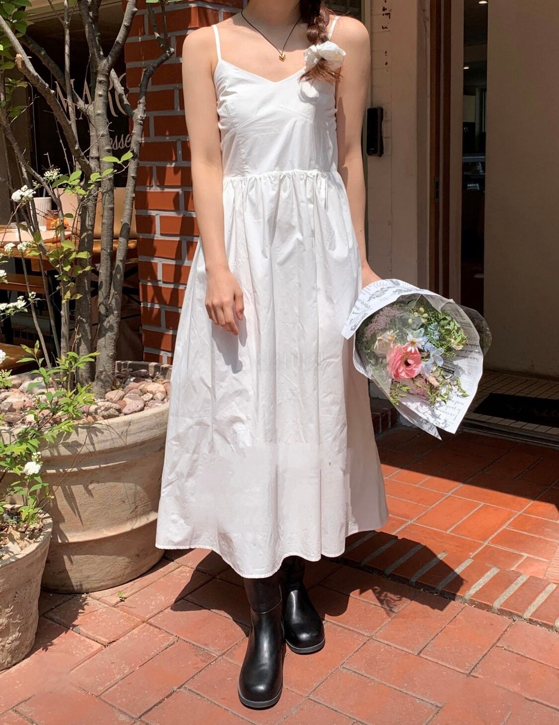 バックギャザーで肩紐調整可能なキャミソールワンピースです。裏地付きです。