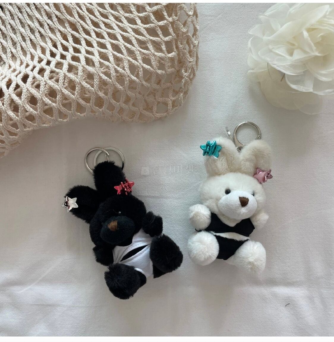 韓国でリュックやカバンにぬいぐるみタイプのキーリングを付けるのが流行ってます。