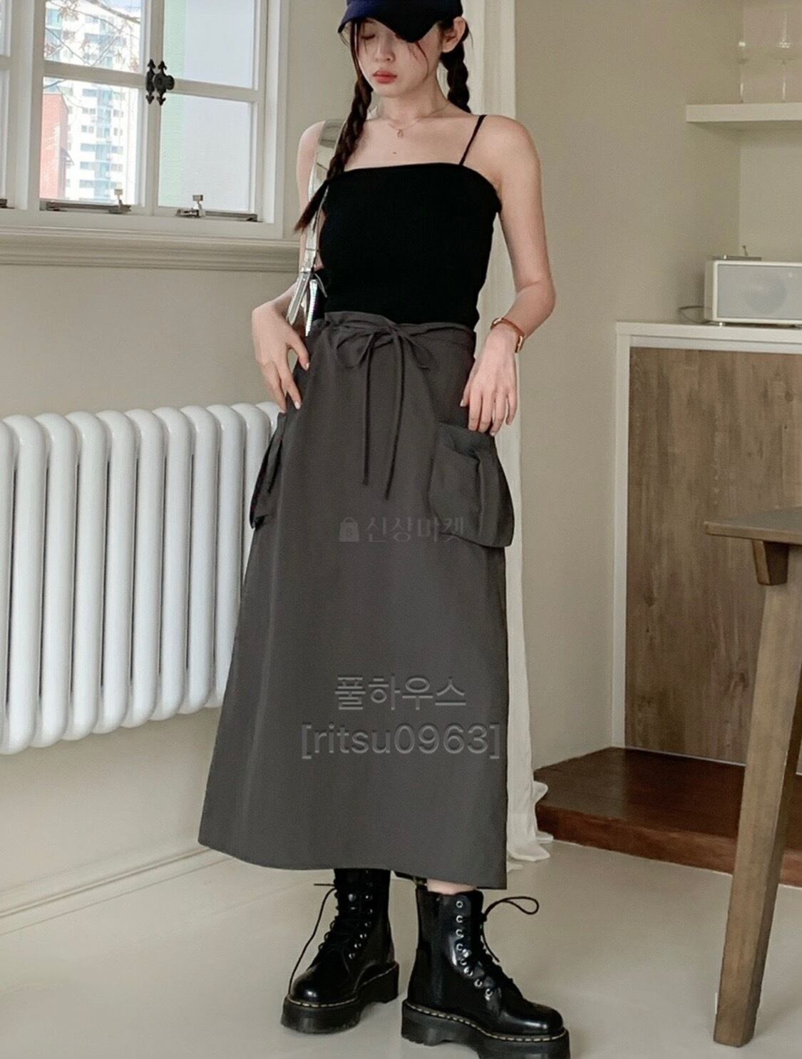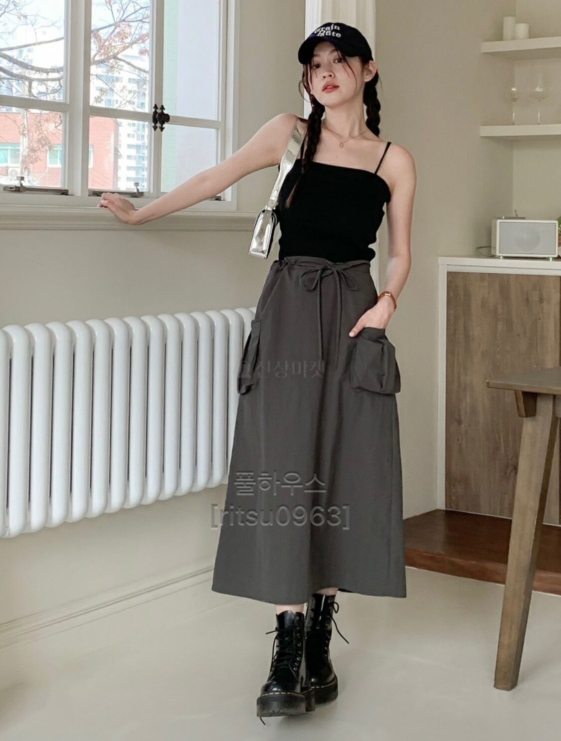 ウエスト後ろ部分がバンディング仕様なのと、ウエスト調整できる紐が付いているので快適な着用感のカーゴスカート。ファスナーもついていますので、着脱もしやすいです。また、後ろスリットが入っているので活動しやすく、夏も涼しく快適なアイテムです。