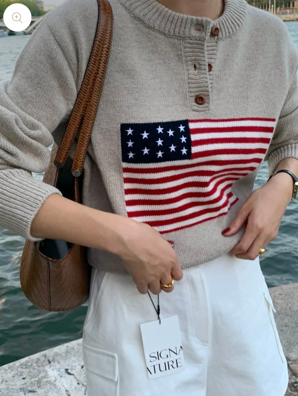 アメリカン国旗がヴィンテージムードを演出してくれるニットです。