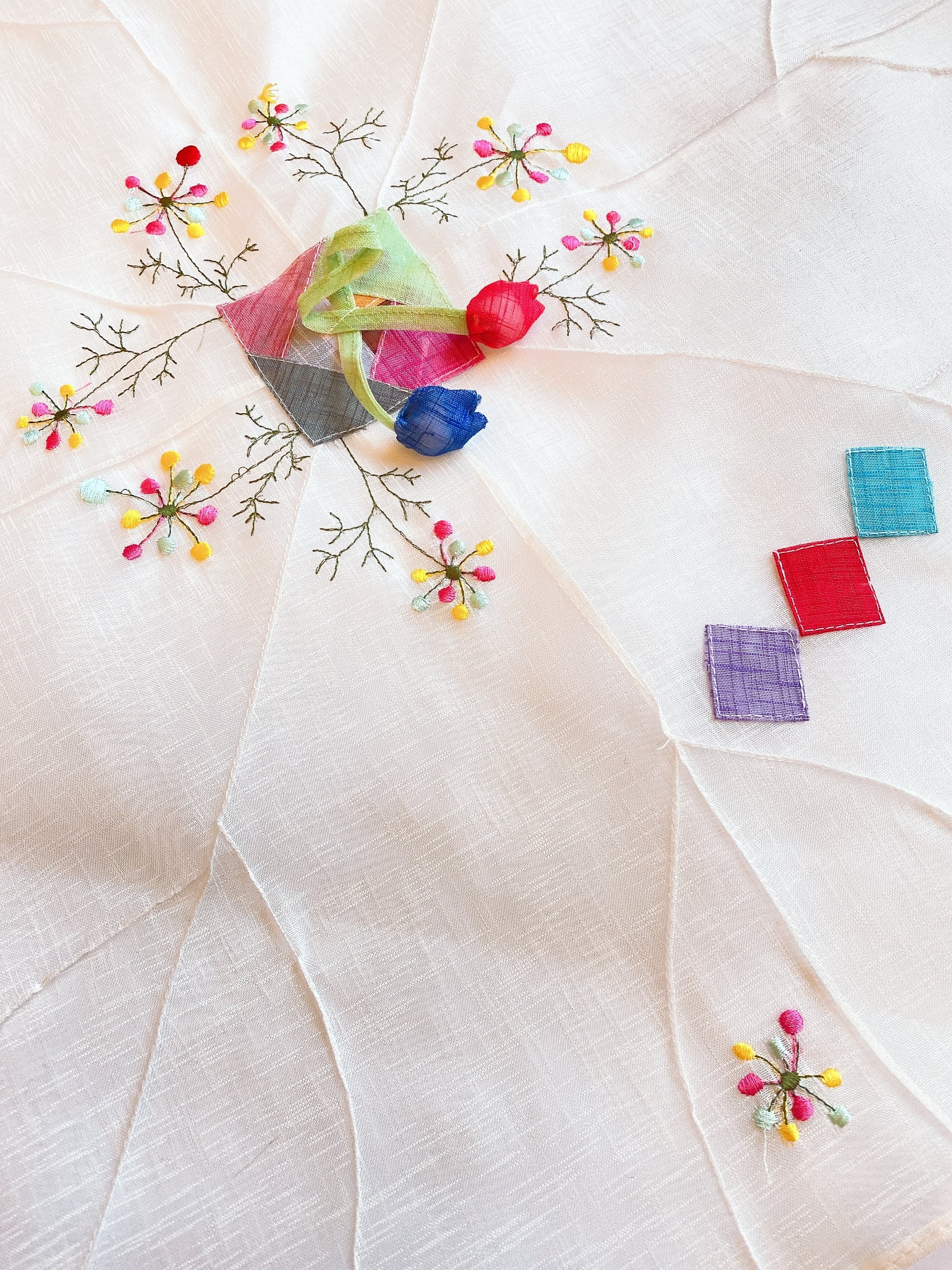 食事の上にかけない時は、キッチンのインテリアや何かの目隠し、また窓ガラス側に掛けても目隠しや日よけになる…と韓国アジュンマが言ってました。